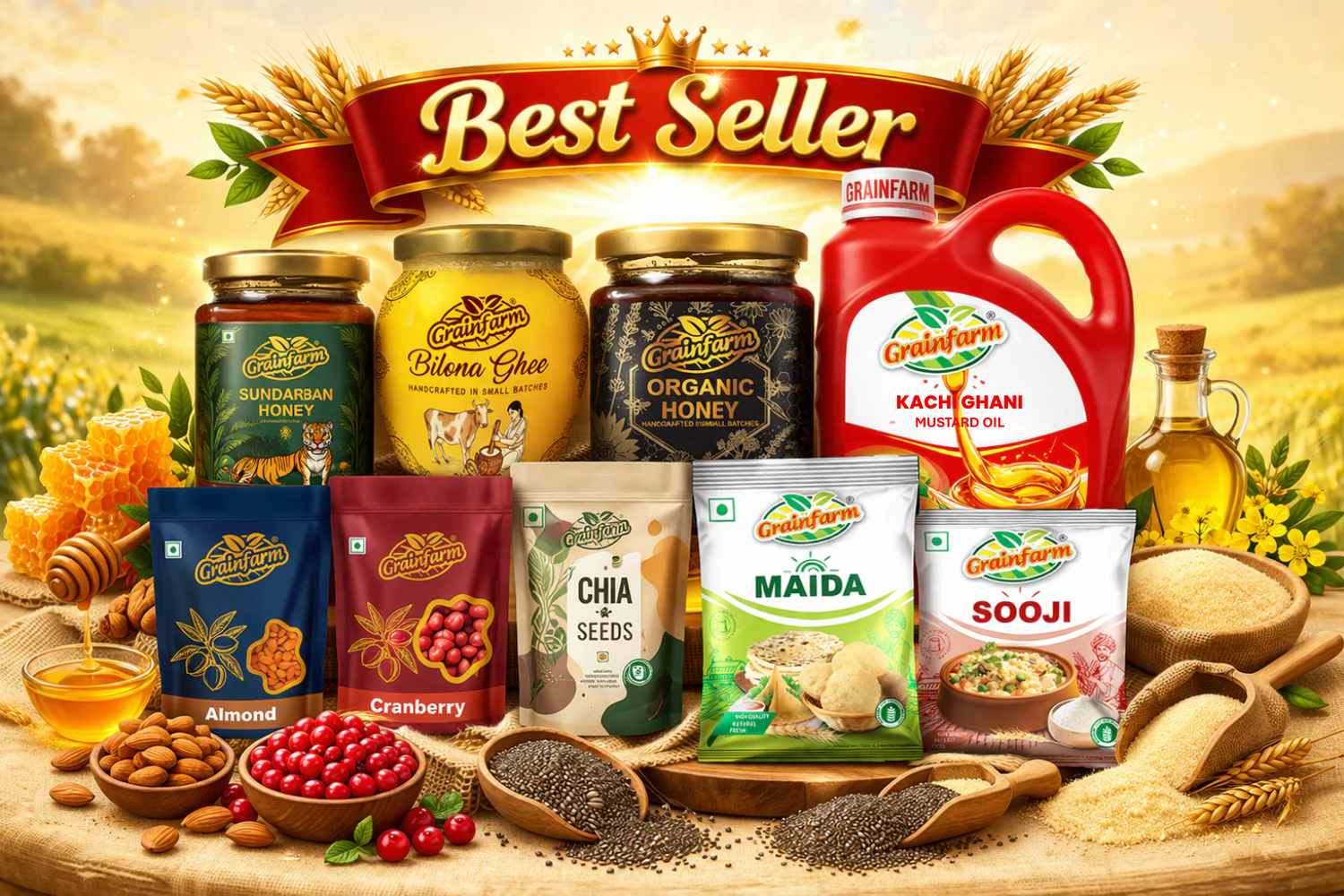 GRAINFARM is a fast-growing FMCG food brand offering premium-quality products including edible oils, ghee, daily staples, naturally sourced honey, nuts, seeds, and packaged foods. We are committed to strict quality standards, hygienic processing, and a reliable supply chain to deliver consistent excellence.