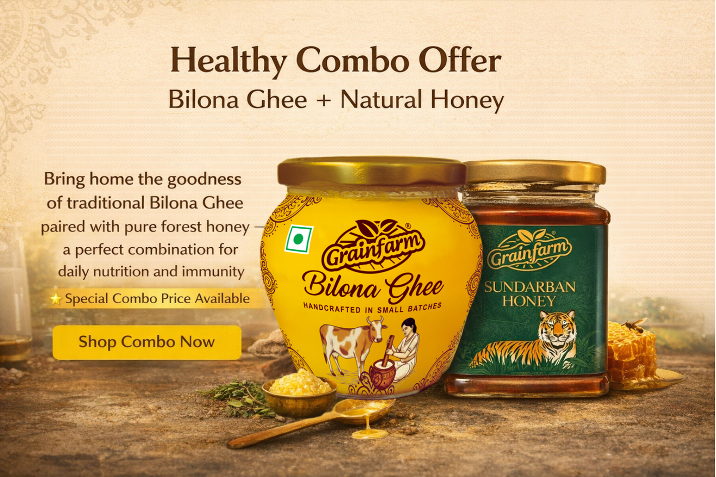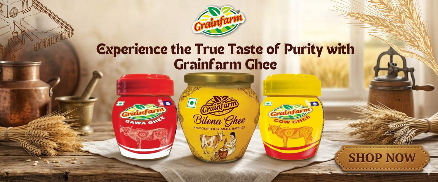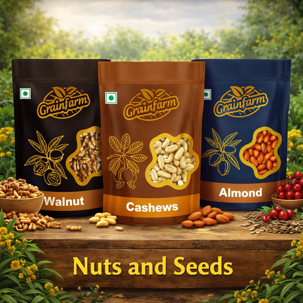 From edible oils, ghee, and staples to honey, nuts, seeds, and packaged foods, Grainfarm offers a complete range for everyday needs.