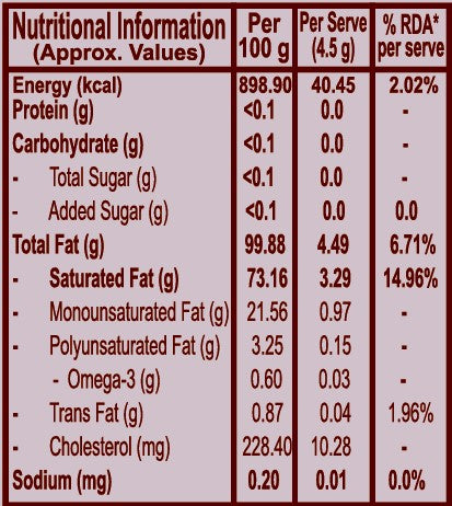 Bilona Ghee is prepared using the ancient bilona method, where curd made from high-quality milk is slowly hand-churned to extract makkhan (butter) and then gently simmered to create pure, aromatic ghee. This slow, traditional process helps preserve natural nutrients, rich flavor, and the original goodness of ghee.