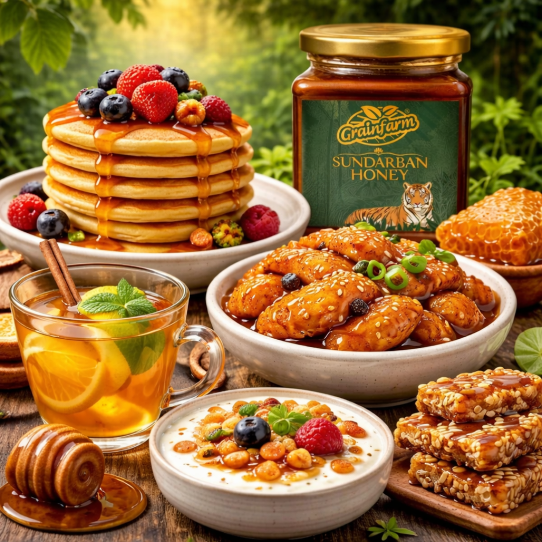 Grainfarm Sundarban Honey is naturally sourced from the pristine mangrove forests of the Sundarbans, one of the richest honey-producing regions in the world. Collected by indigenous beekeepers and carefully processed to retain its natural enzymes and nutrients, this honey has a deep amber color, rich aroma, and robust taste.